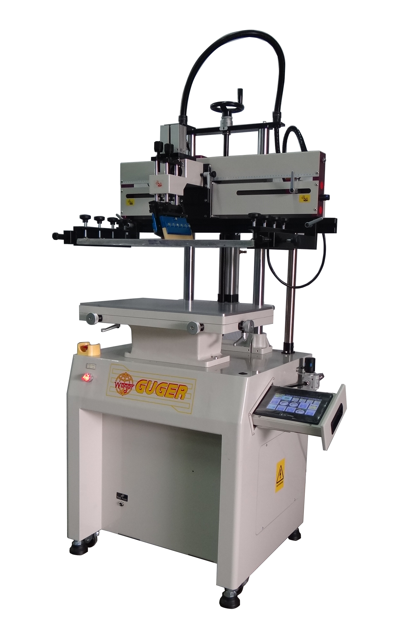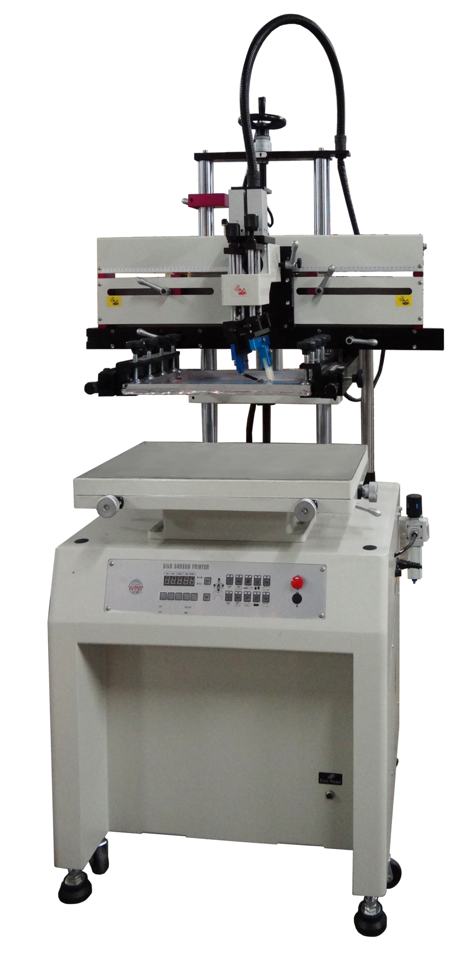 - Pneumatic operated printing head lifting-up design offers a quick and convenient way of screen cleaning, assembling, adjusting as well as other replacement, if required.