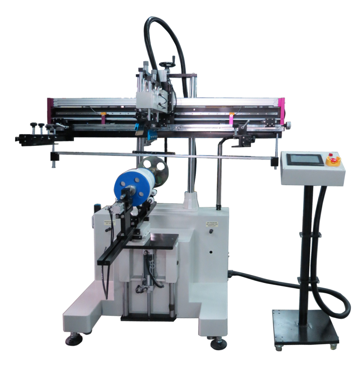 - Pneumatic operated printing head lifting-up design offers a quick and convenient way of screen cleaning, assembling, adjusting as well as other replacement, if required.