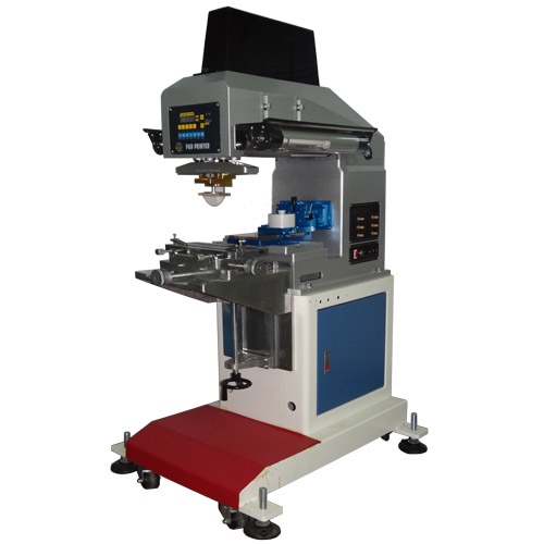 Hair dryer rack It can be fixed on both sides of the machine. Use a common household hair dryer placed on the hair dryer rack. The hair dryer can be adjusted to aim at the Pad or the printing position of the printed matter to speed up the drying of the printing ink. | Hot air device: One blower, two sets of electric heating rods, one set of electronic temperature controller, and two sets of hot air pipes. The hot air temperature can be controlled and aimed at the pad and the printed material to speed up the ink drying. | Ink removal device: When cleaning the pad, you can set the number of times to print and remove ink once. When removing ink, the type table will automatically move under the pad, and the pad will automatically press down to remove the residual ink or dust on the pad. | Dust removal device: Before printing on the object, this device can be used to blow off the dust on the object. When the object approaches the dust removal device, the air jet starts automatically and stops when it moves away. | Crosshair Laser Marker: To assist in alignment, the object's reference point is manually aligned with the cross laser line and fixed before printing. |