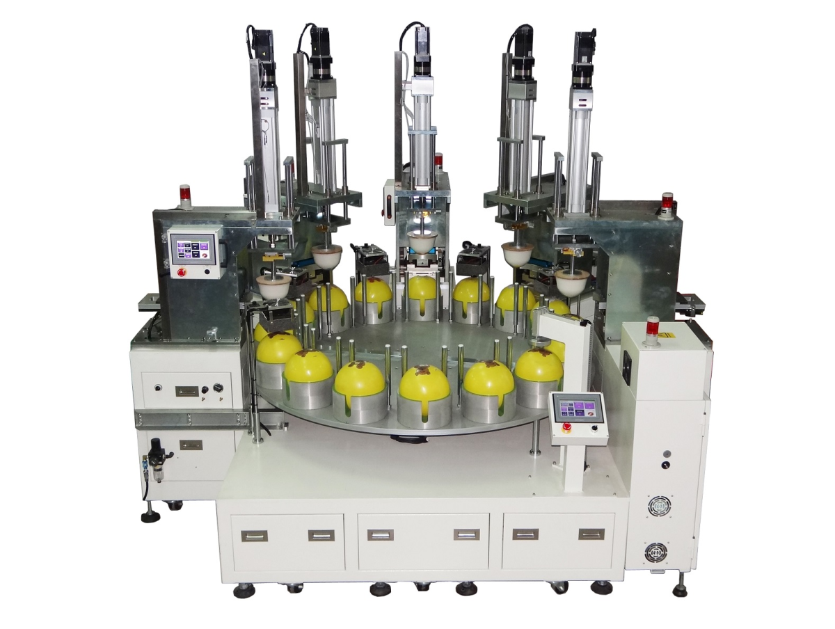 WE-9168Suitable for printing all kinds of engineering hats and safety helmets. Printing colors: 4 It is assembled using 4 horizontal ink cup pad printing machines. |