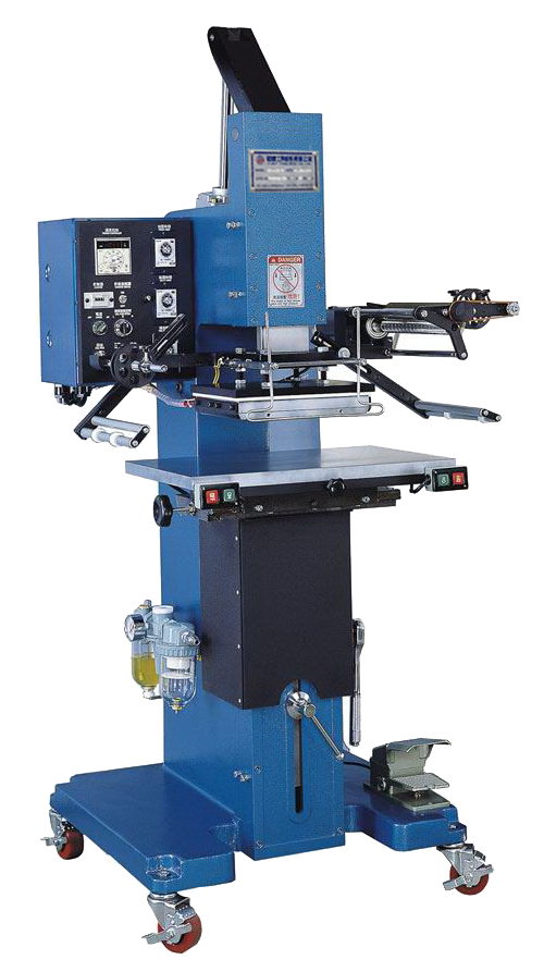燙金若是遇到較長的物件怎麼辦? 需要用到更大台的燙金機嗎? 其實不一定,若是你燙印的圖案很小,不需要用到更高壓力的機台,可使用中小型燙金機,將原本取放位置由前面改為側邊取放,捲箔機構也從橫向改為直向。 這樣無論物件多長都可燙印,也可以在同物件上做固定跨距連續燙印。