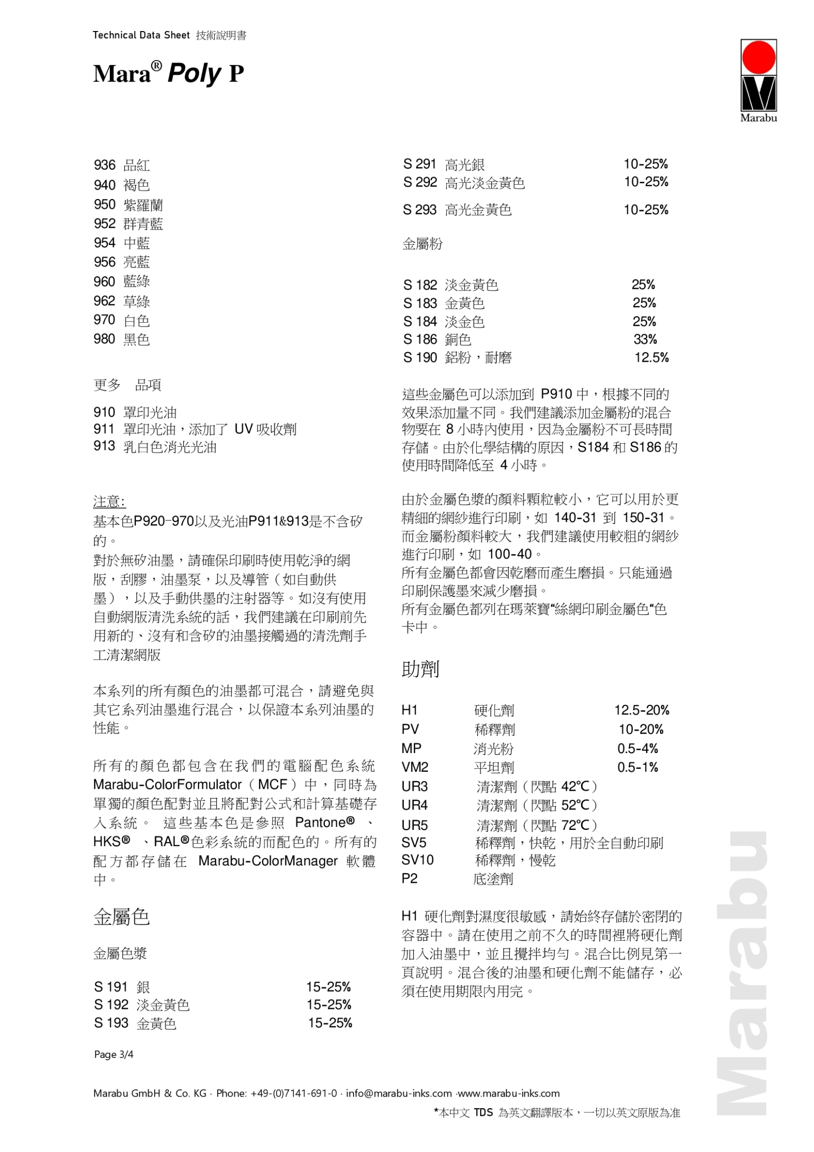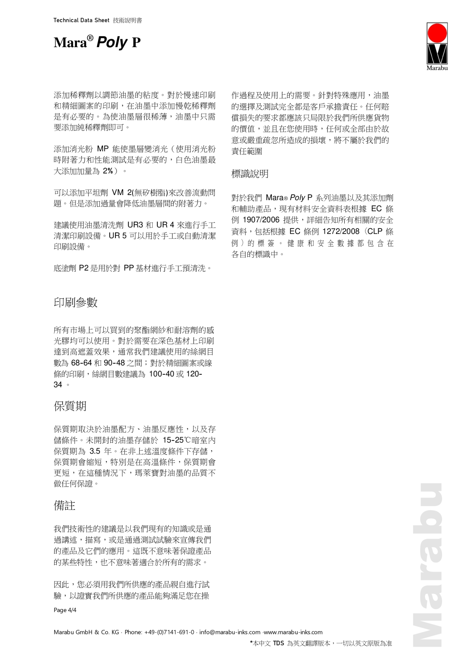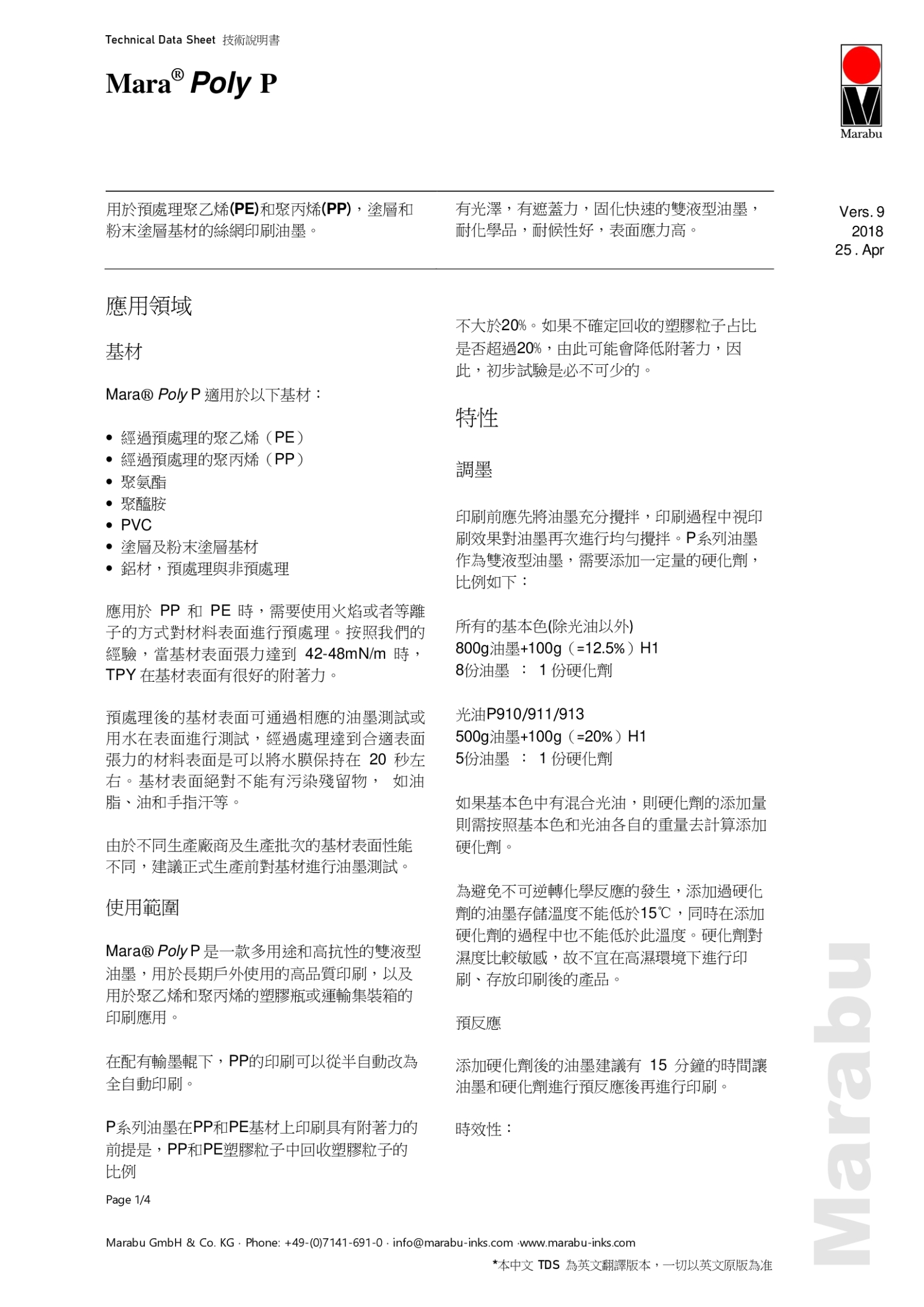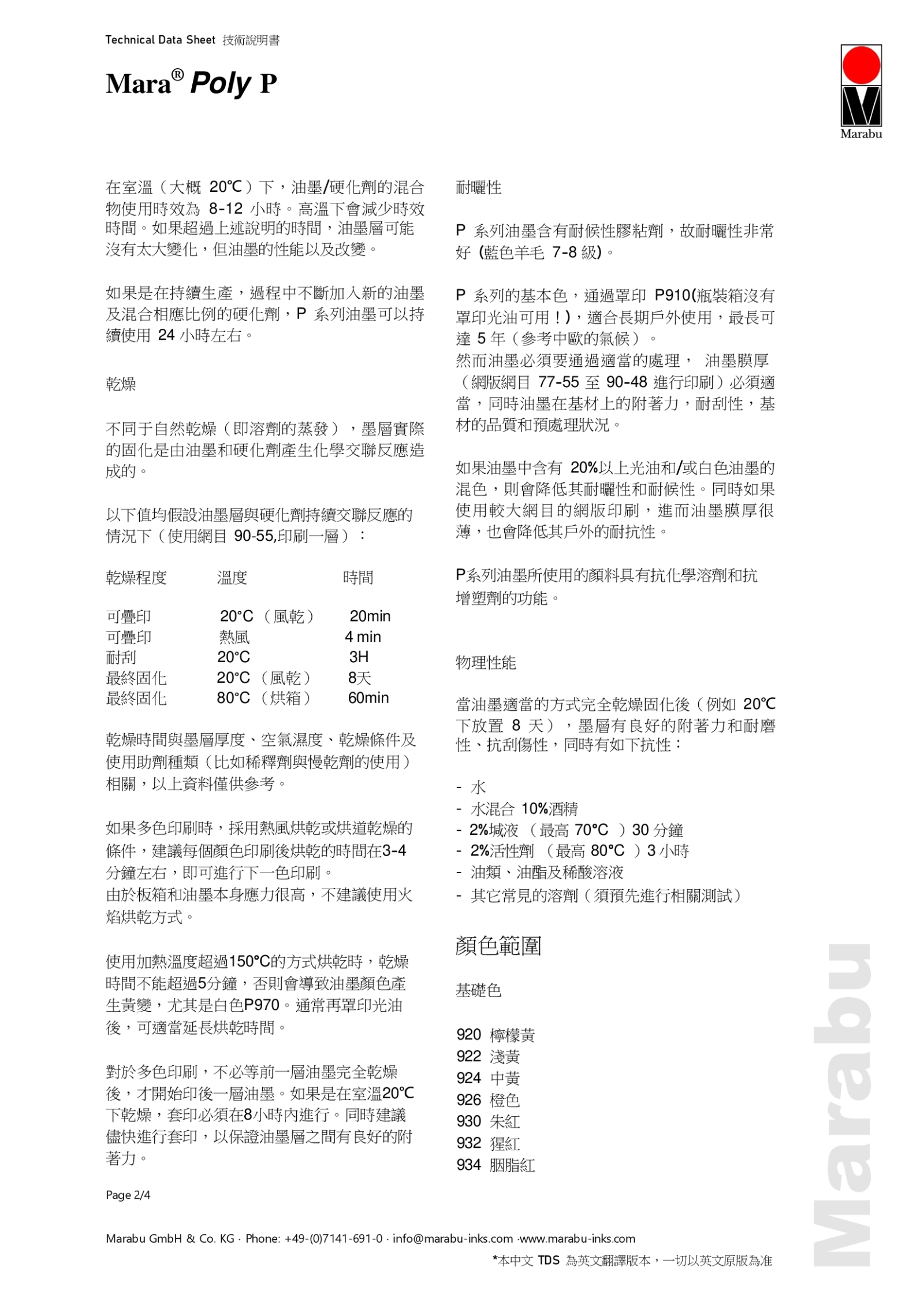 MaraPoly P 是一種用途廣泛的全能雙液型油墨、高抗性絲網印刷油墨。也可用作單組分油墨系統的保護光油(清漆),適合長期戶外使用。