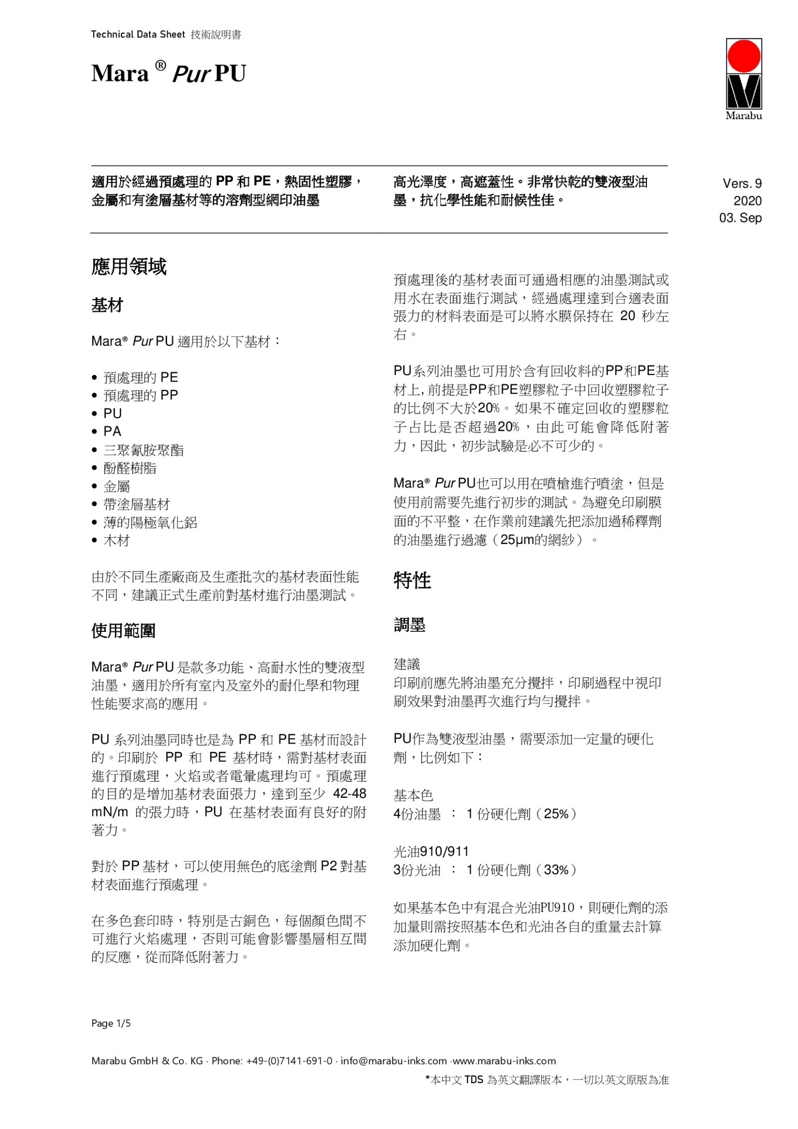 MaraPur PU 是一種高度耐用的雙液型油墨,適用於室內和室外使用。