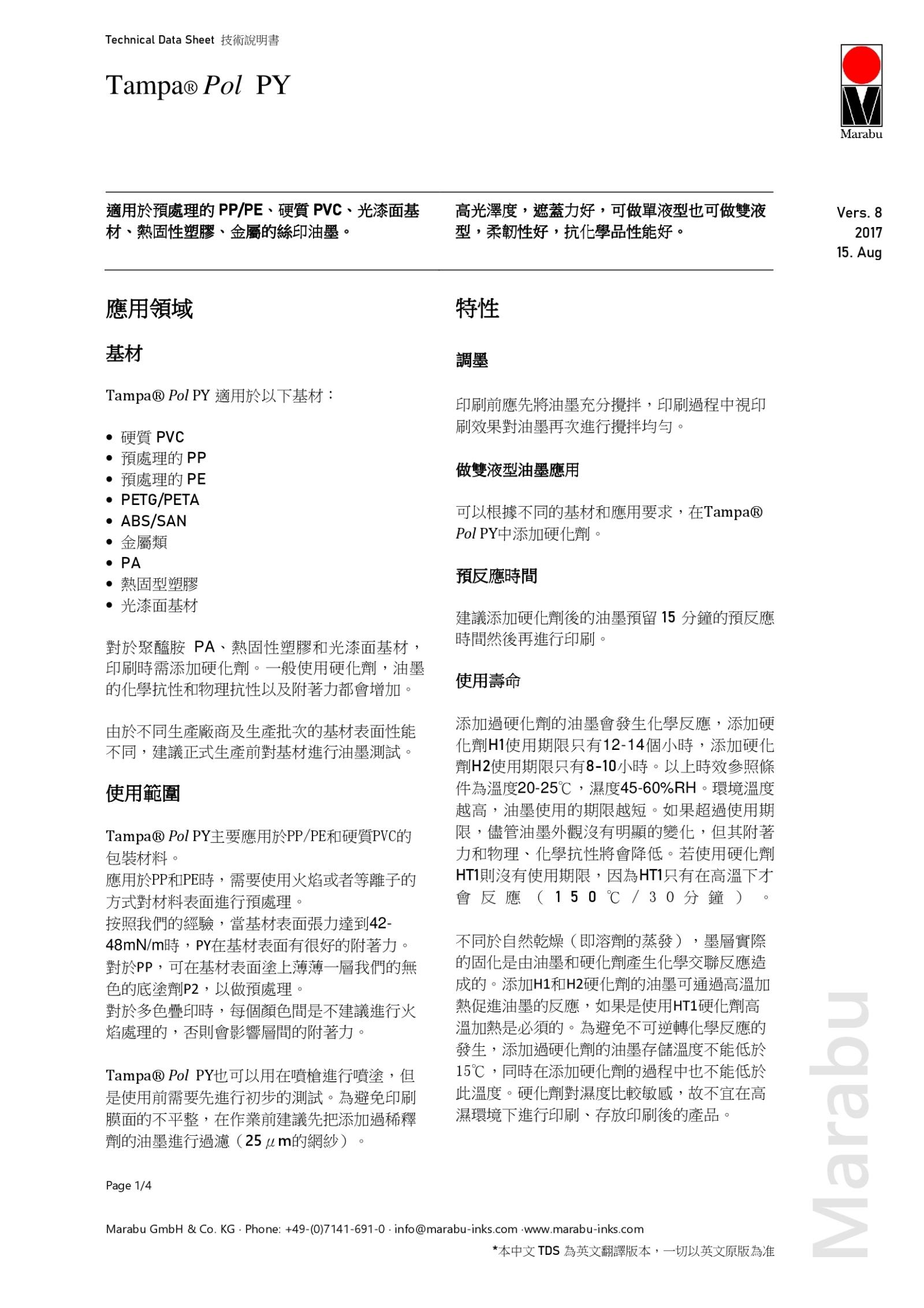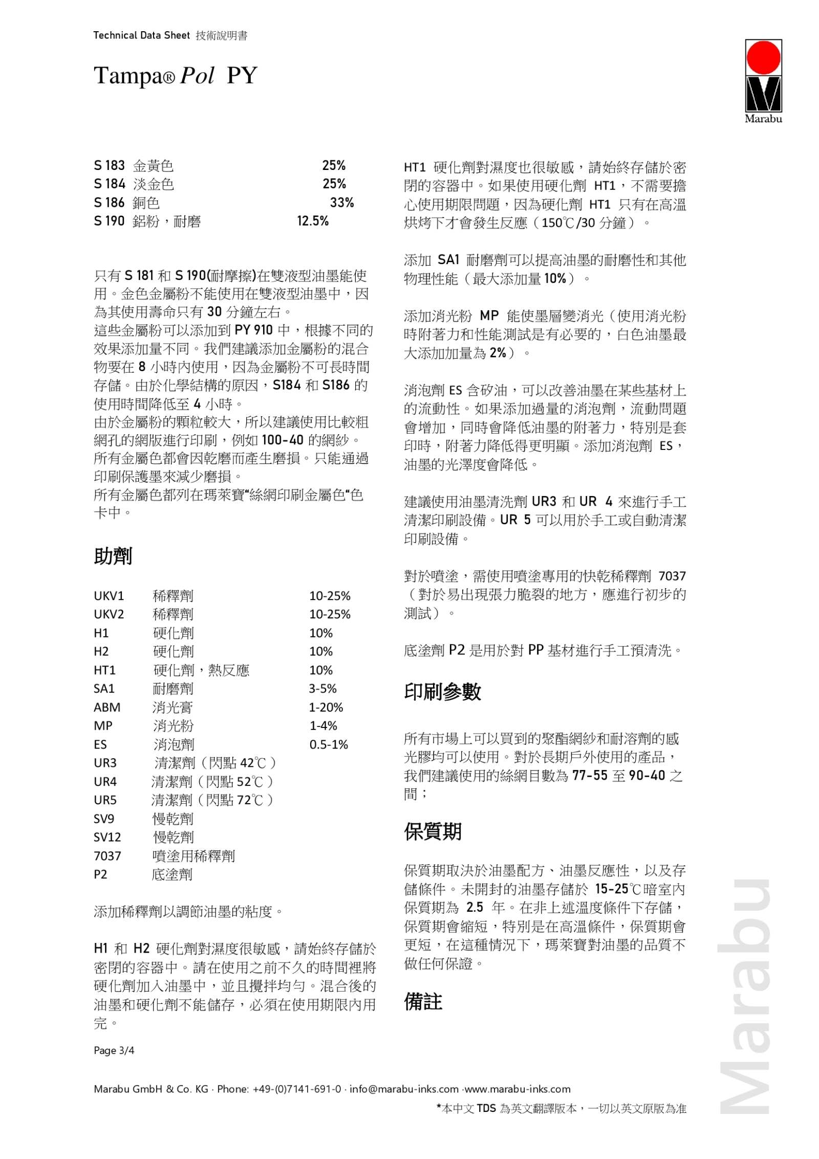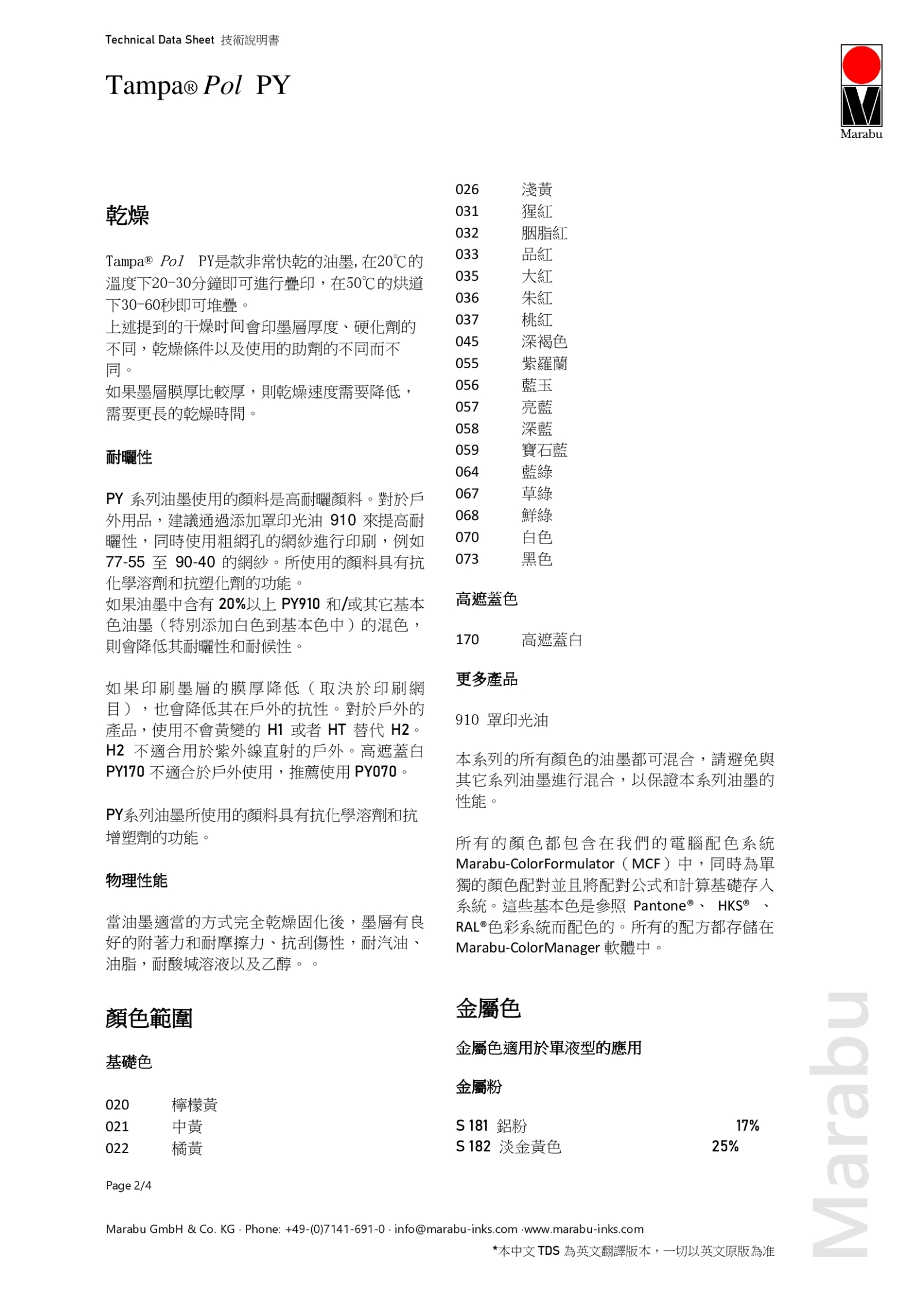 技術資料表Further Shades