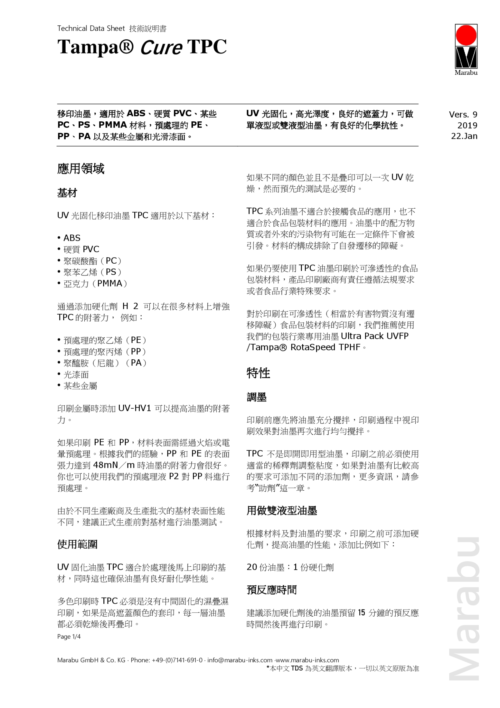 德國馬來寶TPC油墨
