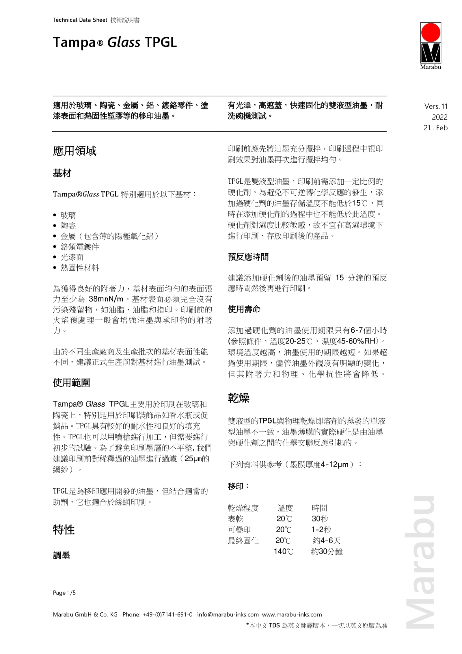 於玻璃和許多其他基材的有光澤,快乾的雙液型移印油墨。TPGL的出色外觀給人留下深刻的印象,具有非常好的附著力和高電阻,易於使用且普遍適用。