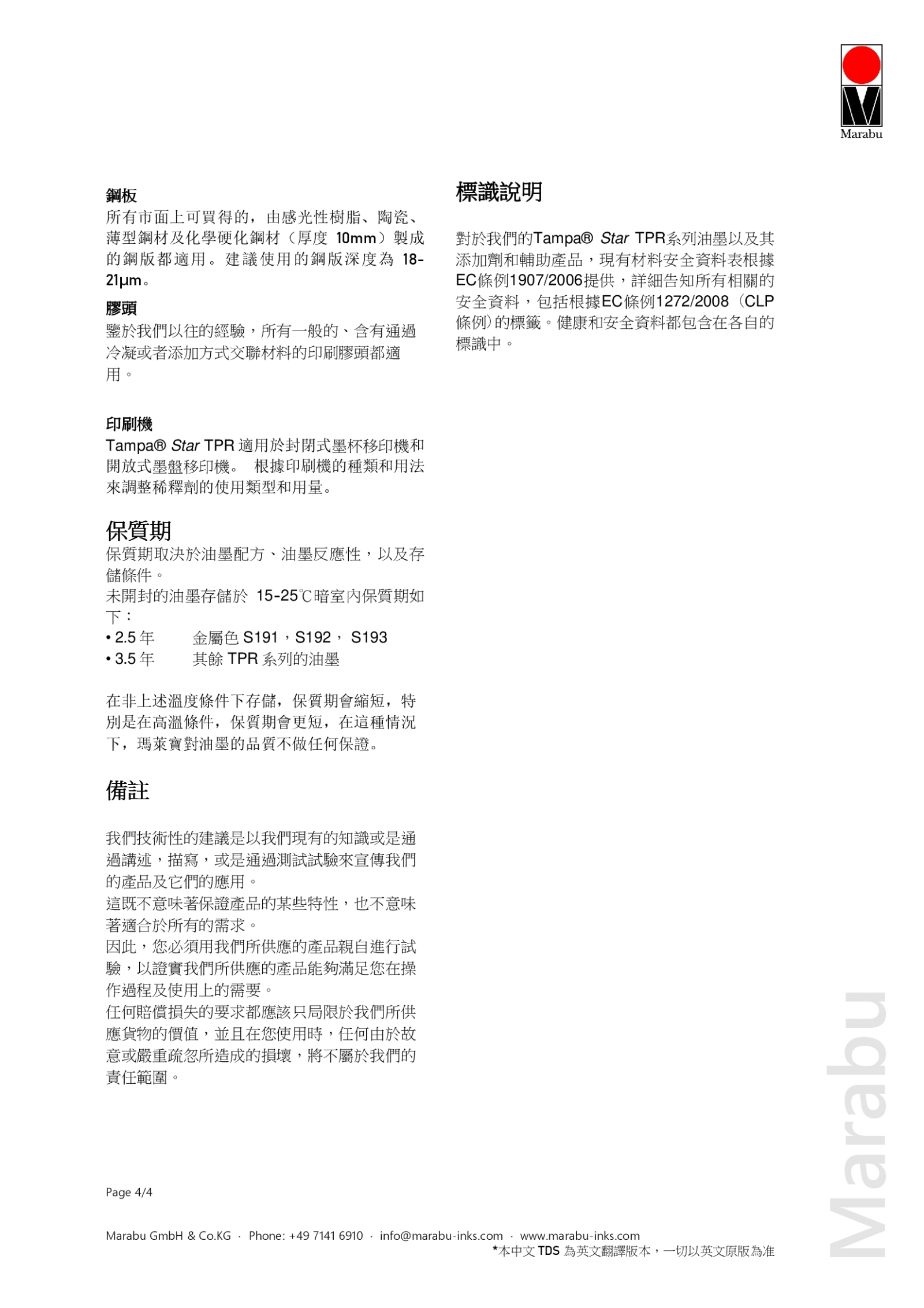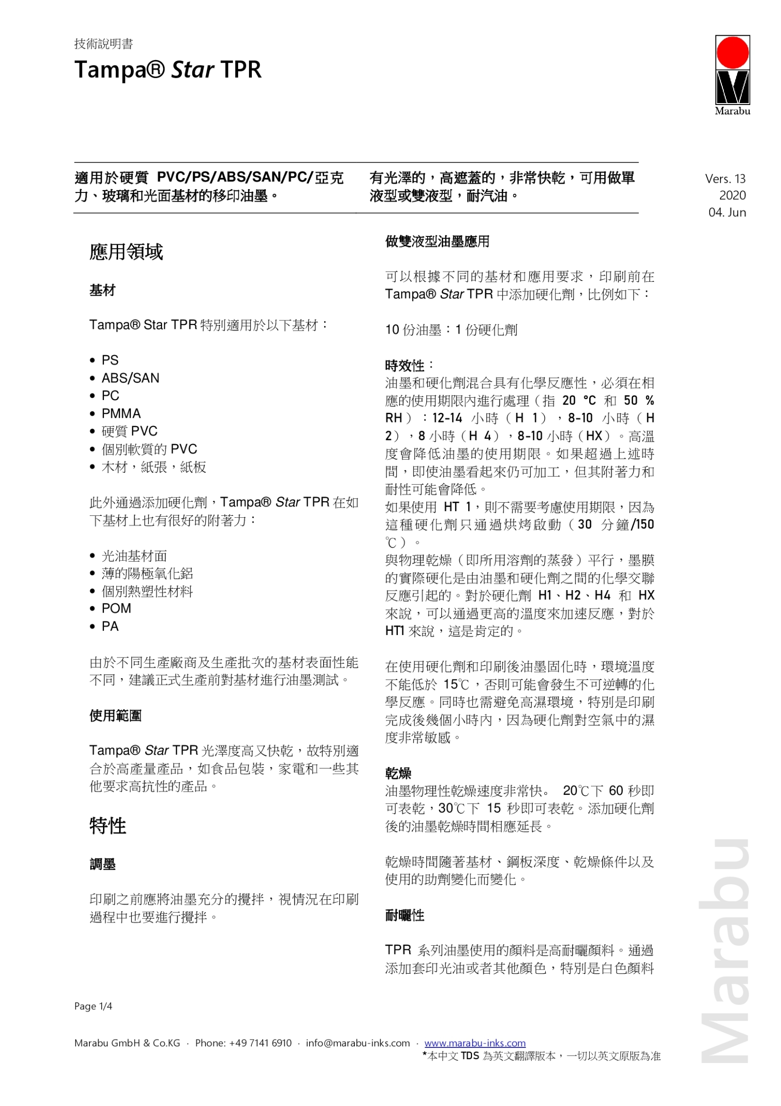德國馬來寶TPR油墨