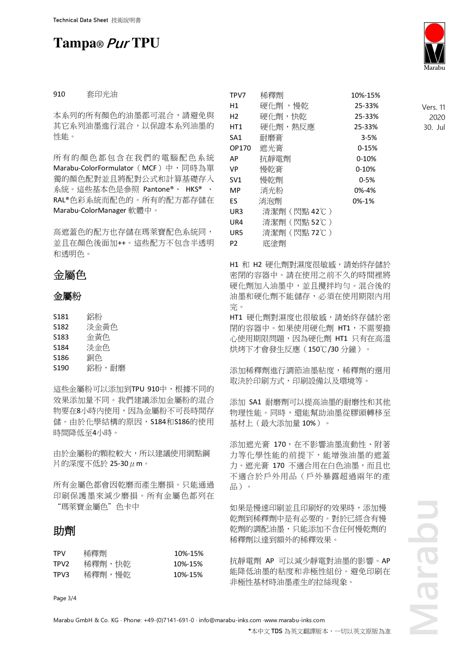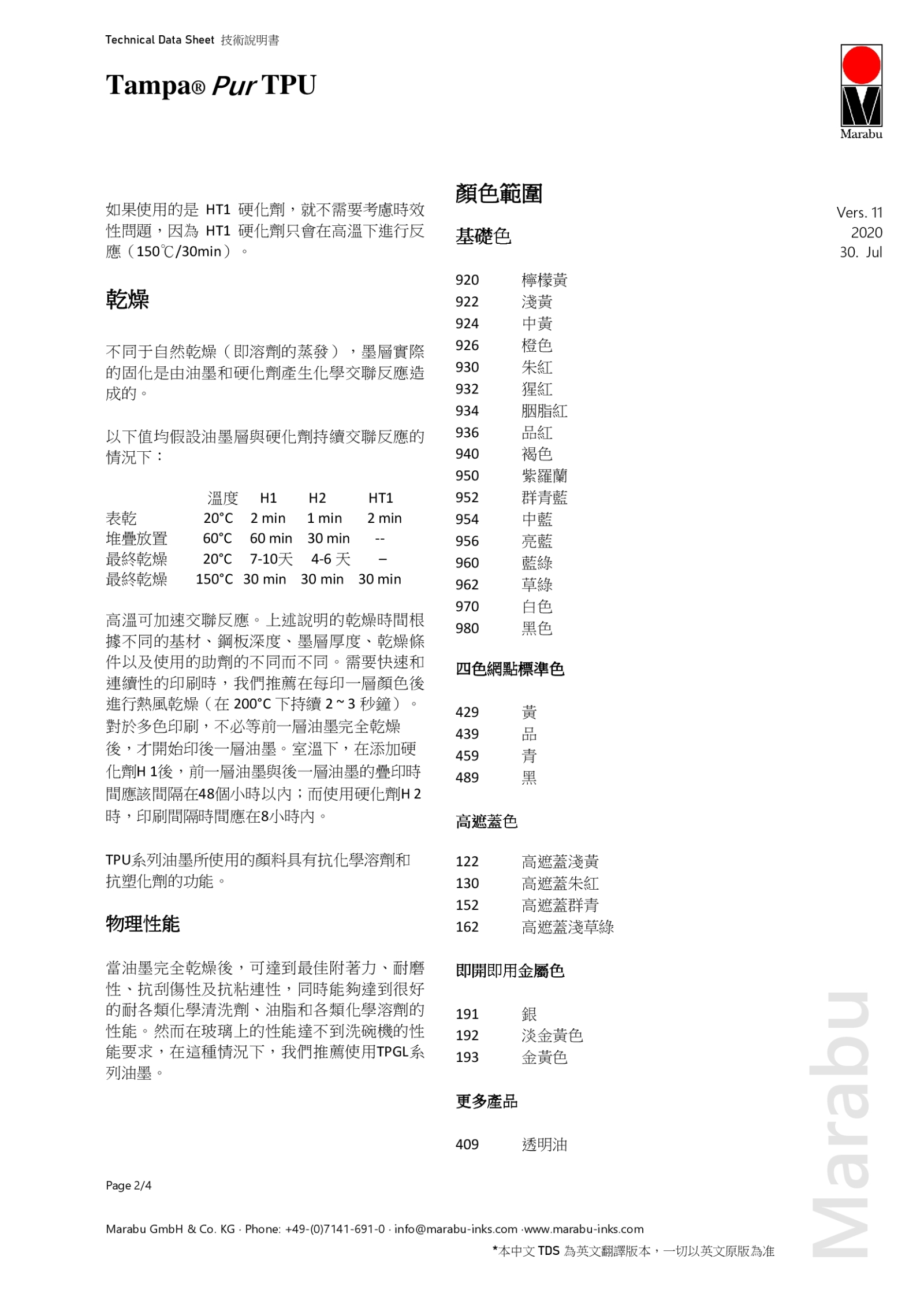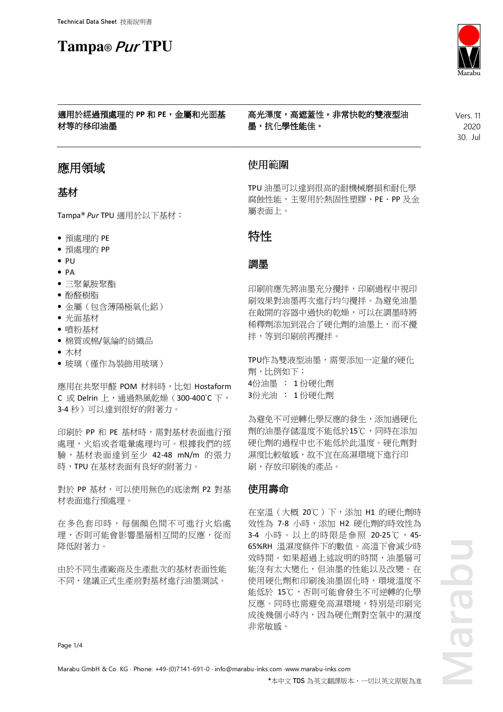 TPU是一種高光澤,快速固化的兩組分油墨,具有出色的機械和化學耐受性,並在關鍵材料上具有出色的附著力。