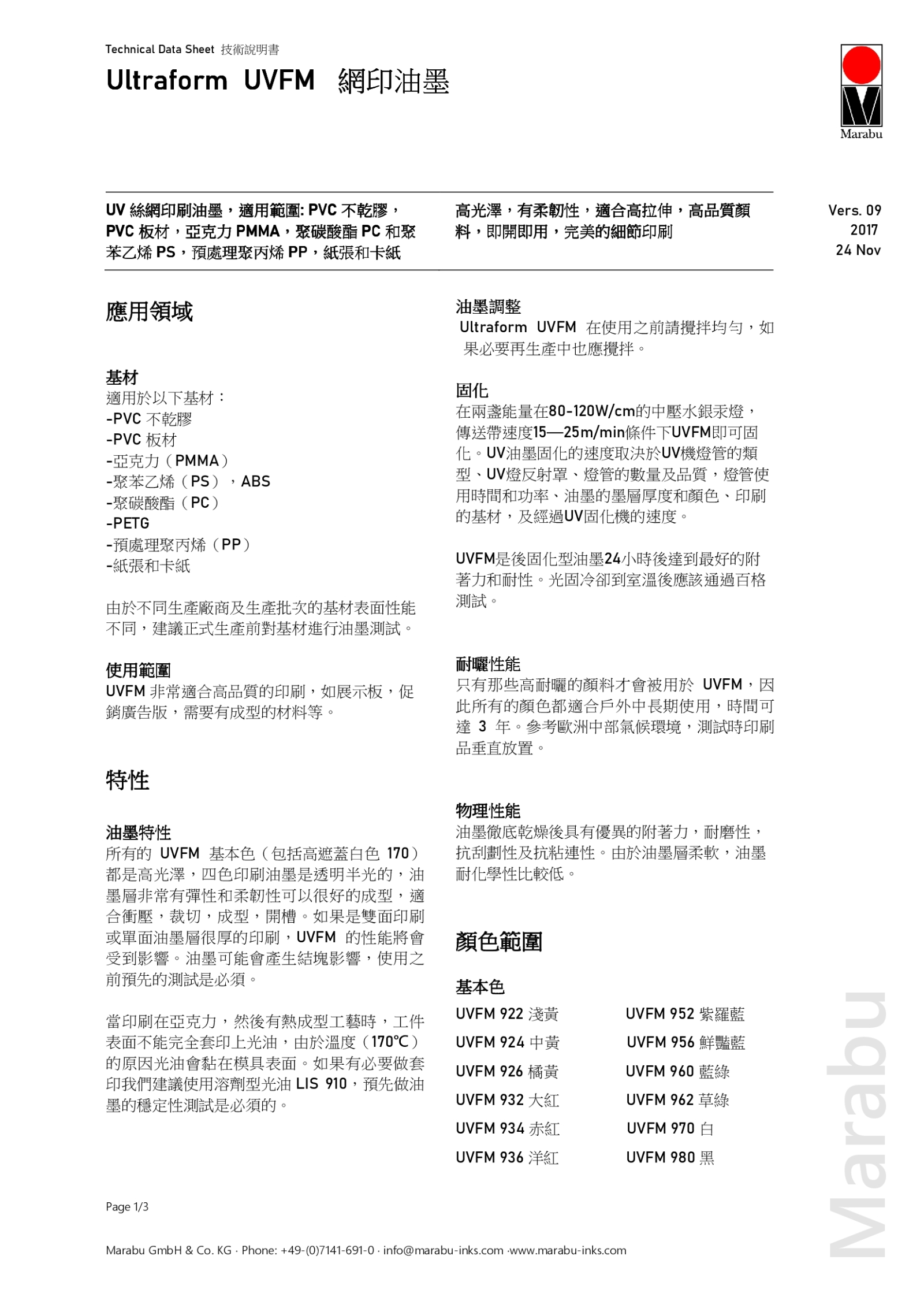 德國馬來寶UVFM油墨
