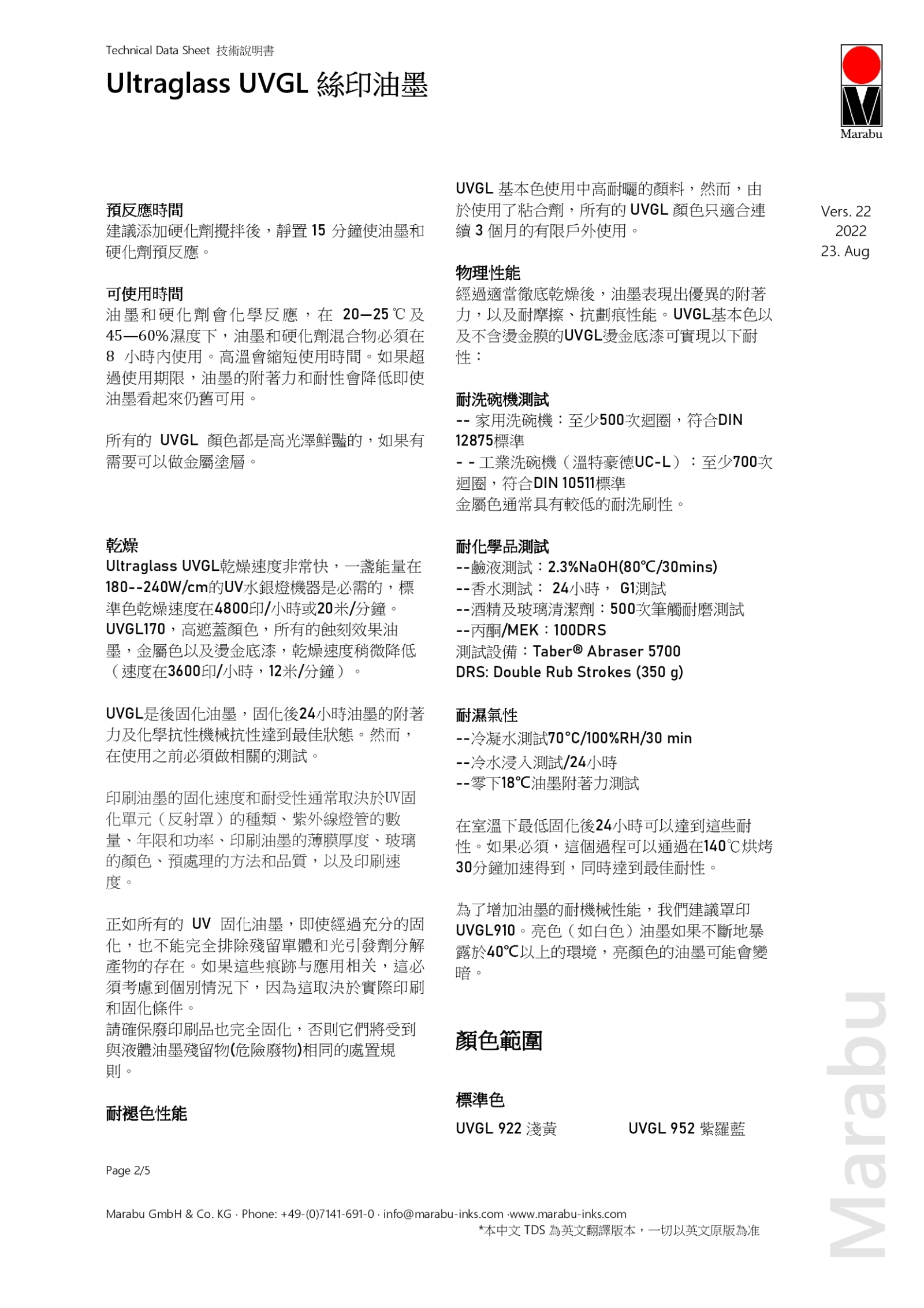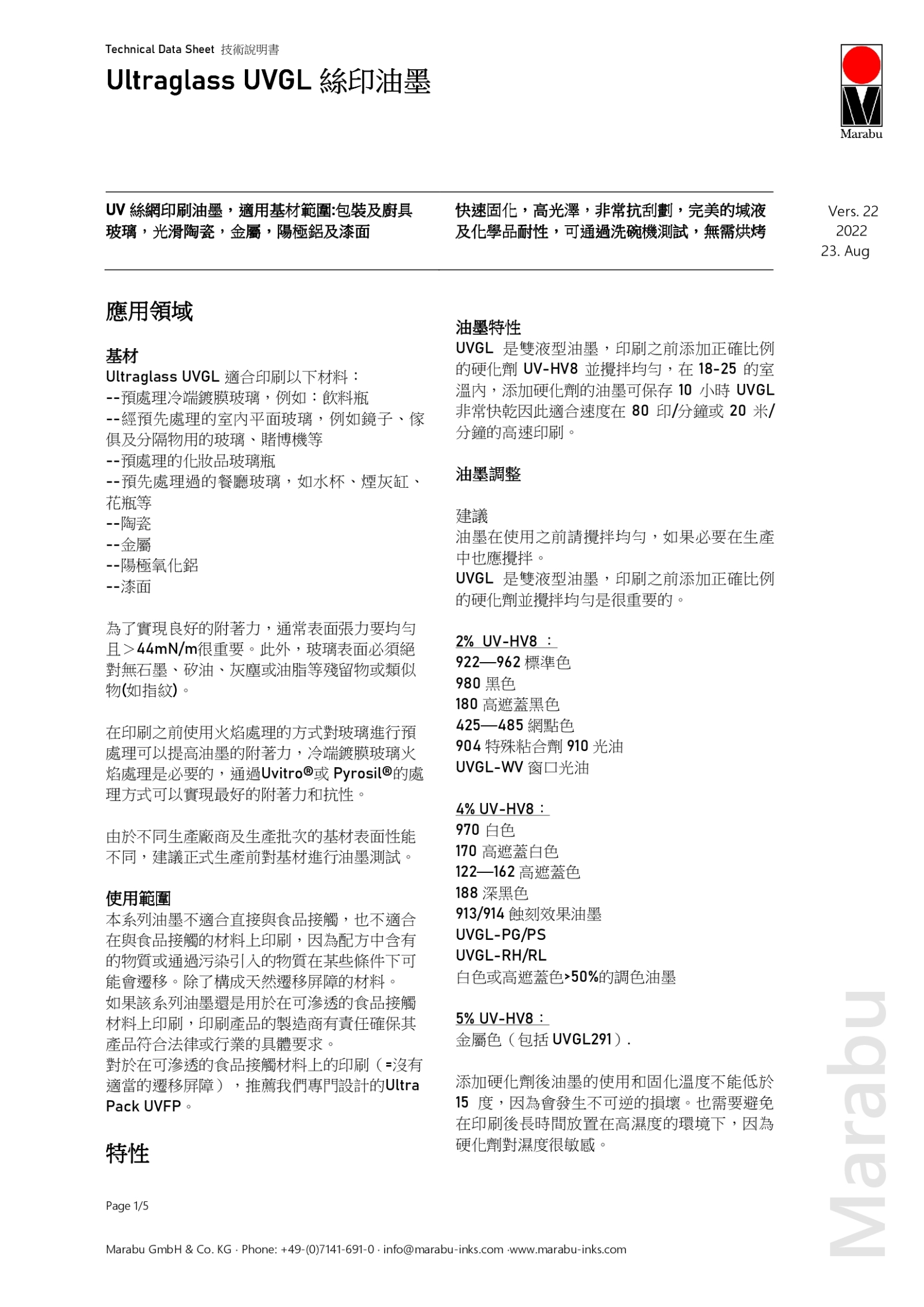 可紫外線固化的雙液型油墨 UltraGlass UVGL 不需要額外的後烘烤,同時保證最高的抵抗力。