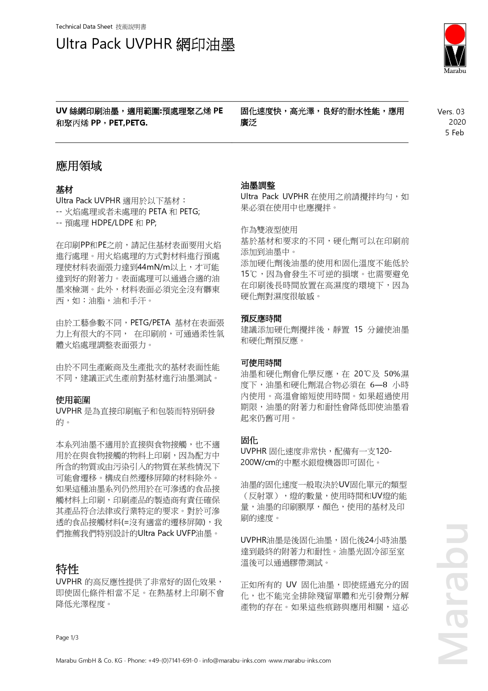 Ultra Pack UVPHR 設計用於在由 PET 製成的容器上打印,由於其高反應性,UVPHR 適用於高速機器,但也能容忍不太完美的固化條件。